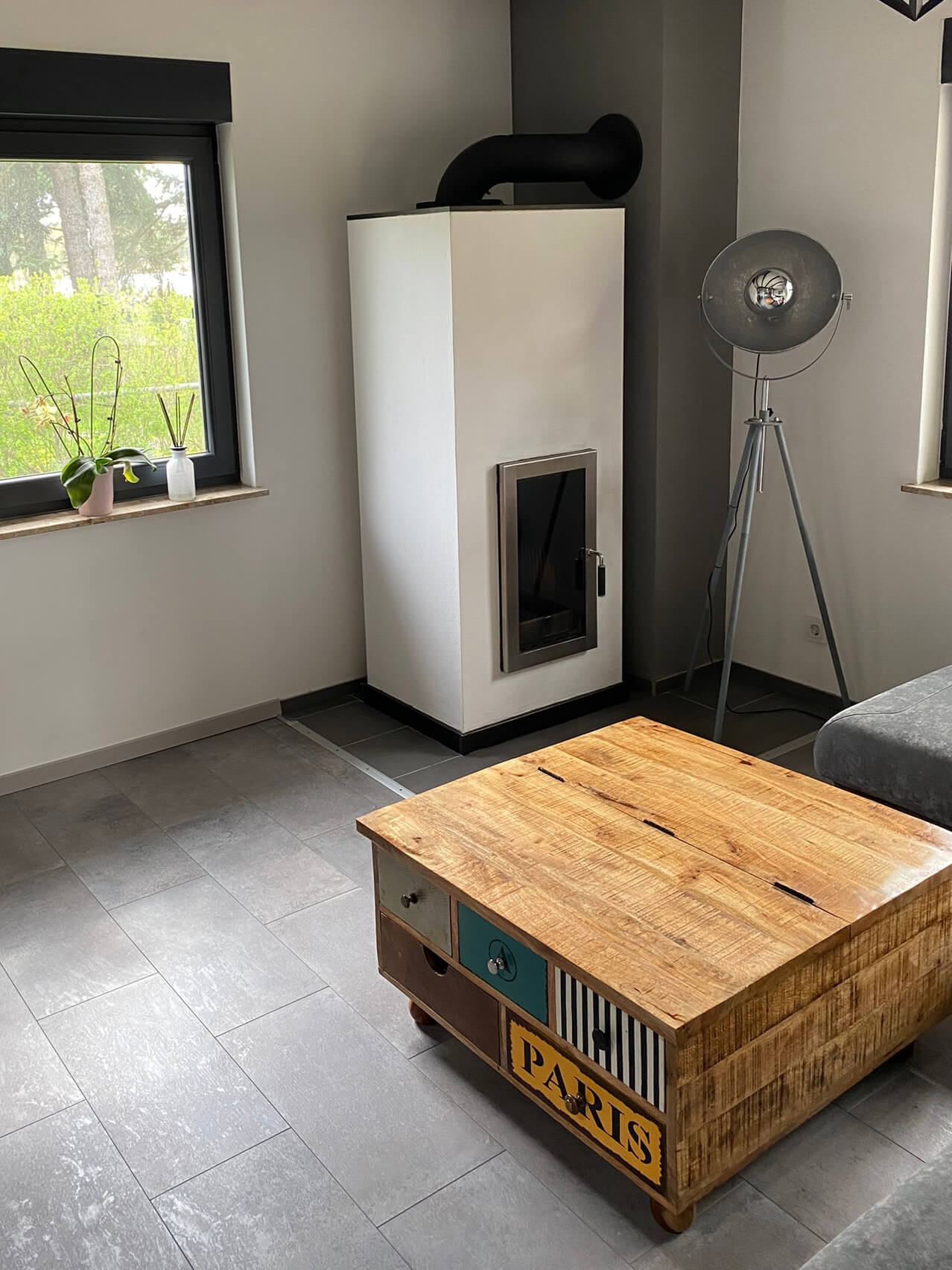 Das Ferienhaus selbst verfügt über ein gemütliches Ambiente und bietet auf 70 Quadratmetern ausreichend Platz für eine Familie oder eine Gruppe von Freunden. Im Erdgeschoss befindet sich ein offener Wohnbereich mit einer komplett ausgestatteten Küche, einem Essbereich und einem bequemen Sofa, auf dem Sie es sich vor dem Fernseher gemütlich machen können. Von hier aus gelangen Sie auch auf die großzügige Terrasse mit einem herrlichen Blick auf den See.